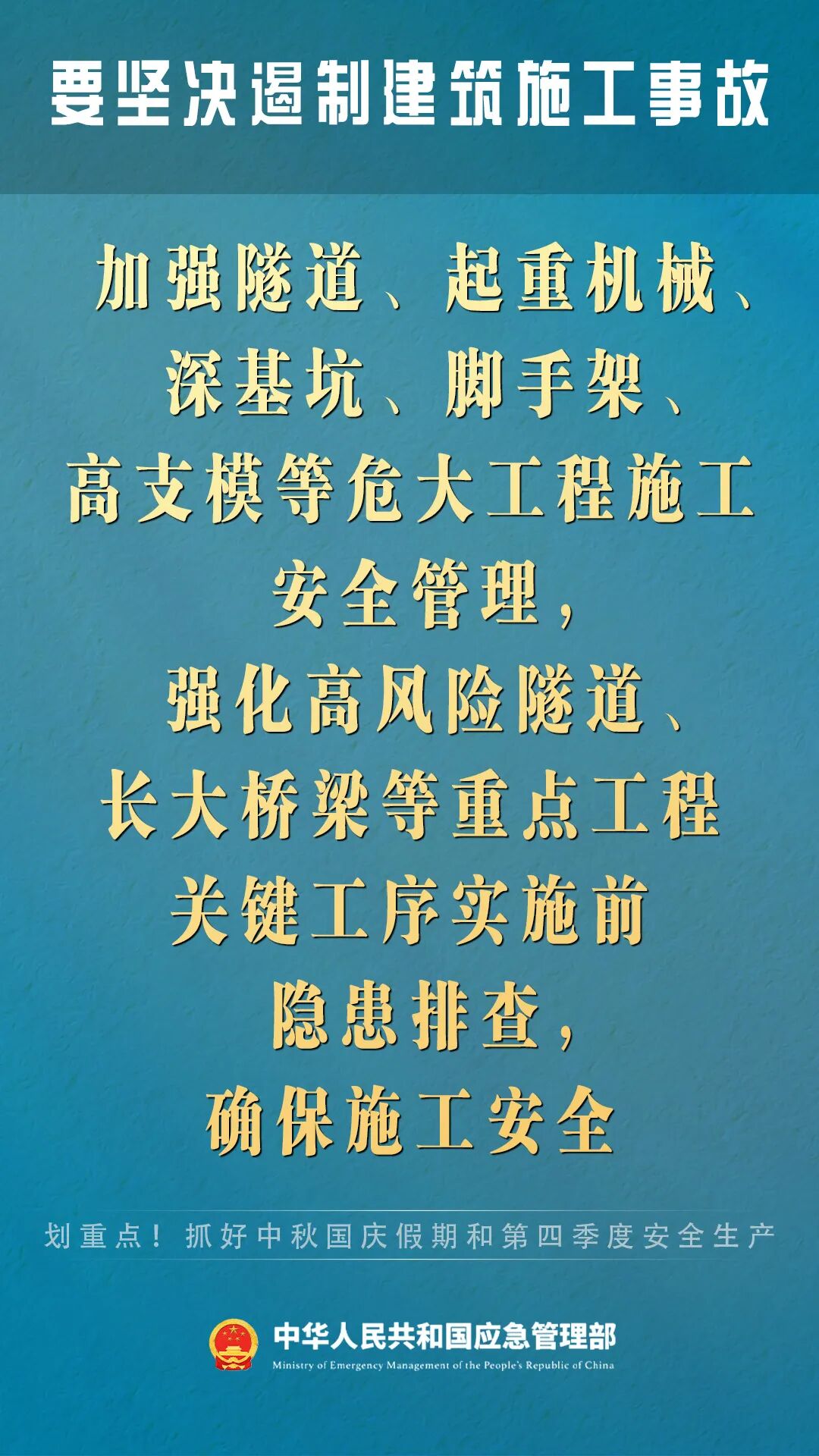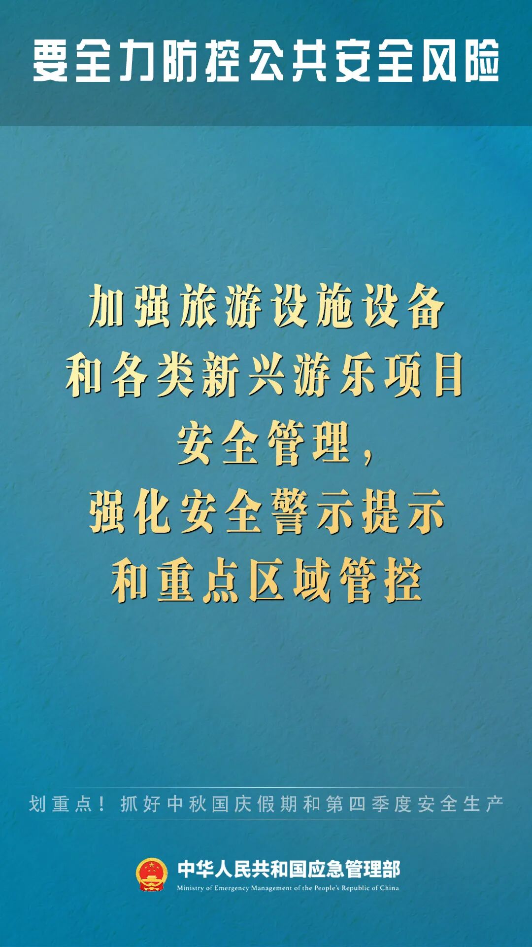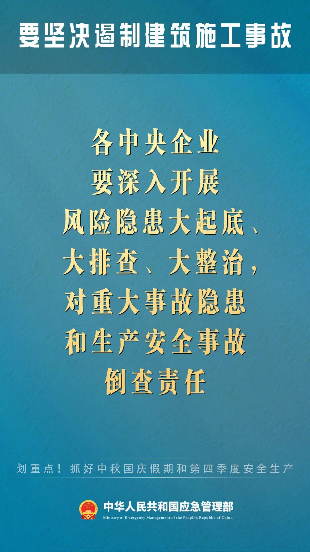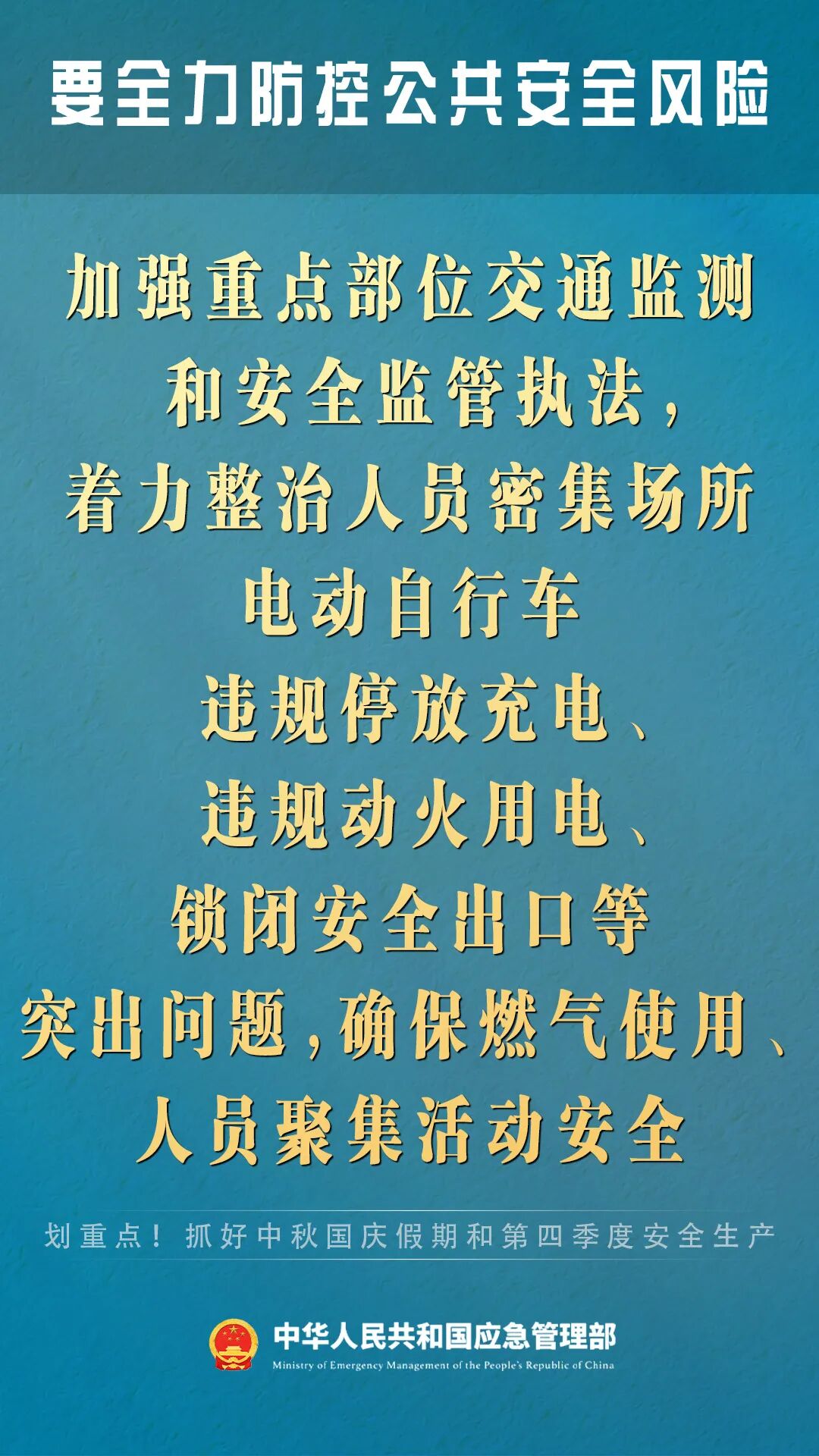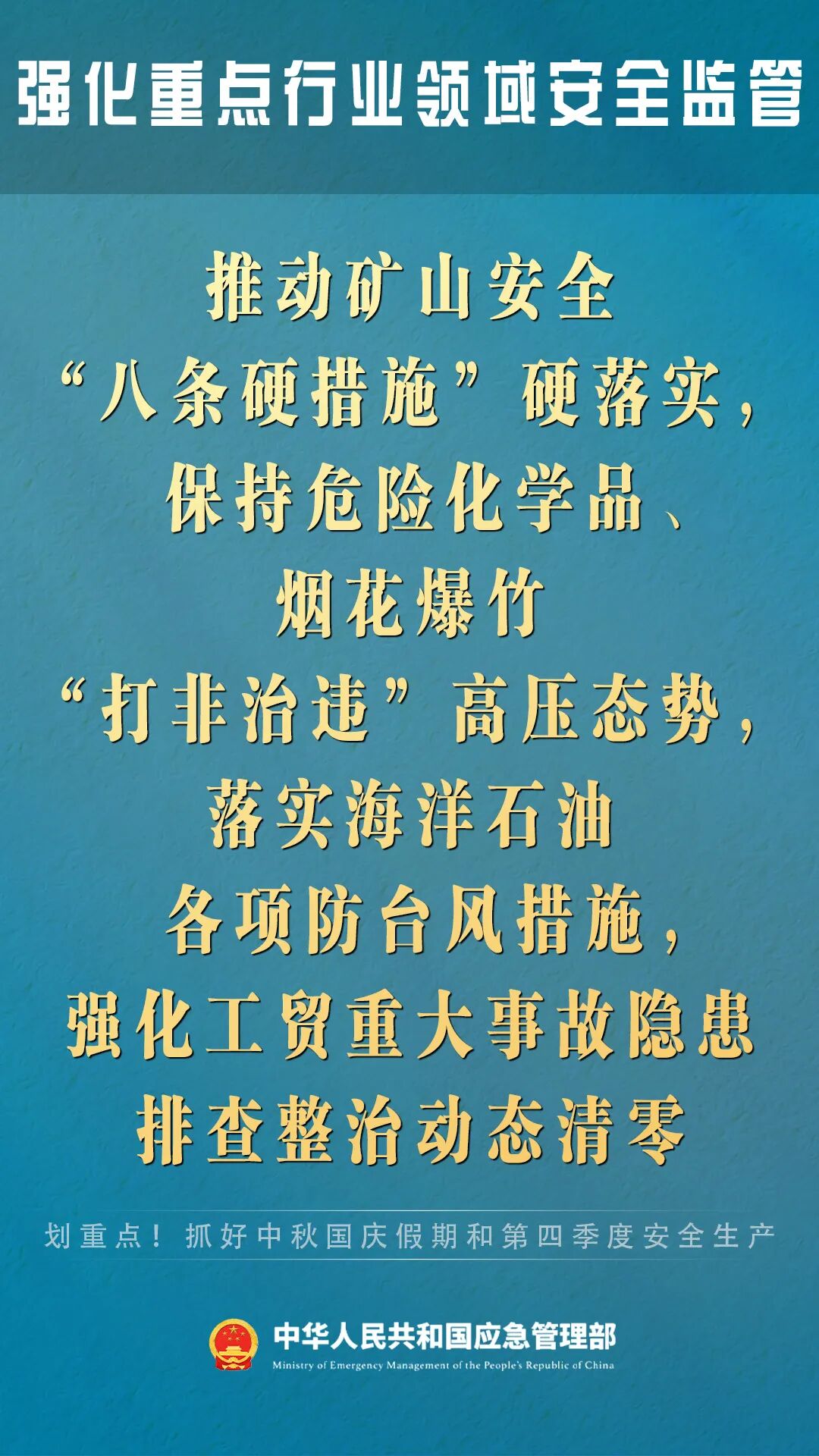 国务院安委会办公室印发通知部署各地区、各有关部门和中央企业深入贯彻落实习近平总书记关于安全生产的重要指示批示精神深刻汲取事故教训,严格落实安全责任举一反三全面排查整治薄弱环节落实落细安全防范措施抓好中秋国庆假期和第四季度安全生产工作这些内容划重点!